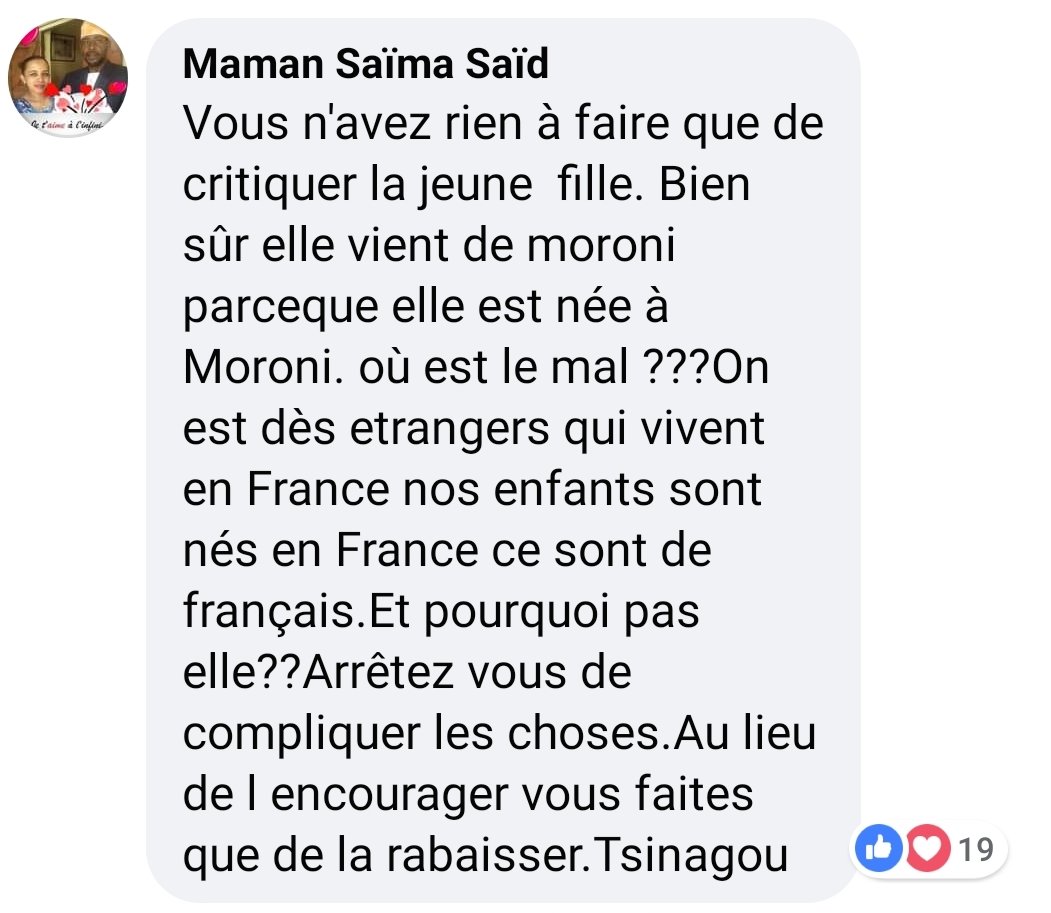 Pour les internautes Souraya est bien originaire de Moroni même si ses deux parents ne sont pas de Moroni. Elle vit à Moroni, elle a fait ses études, elle a ses amis et elle fait sa vie à Moroni. Elle a uniquement des origines à Mitsamihuli et à Hadjambou.
