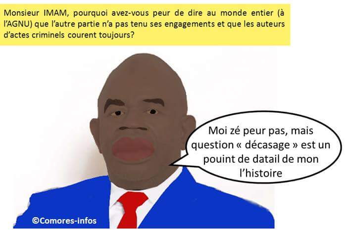 Dessin Satirique. Lors de son investiture AZALI avait déclaré : « J’ai noté l’engagement des autorités françaises, à tous les niveaux, à sanctionner les auteurs des actes ignobles et criminels dont sont victimes nos compatriotes ».
