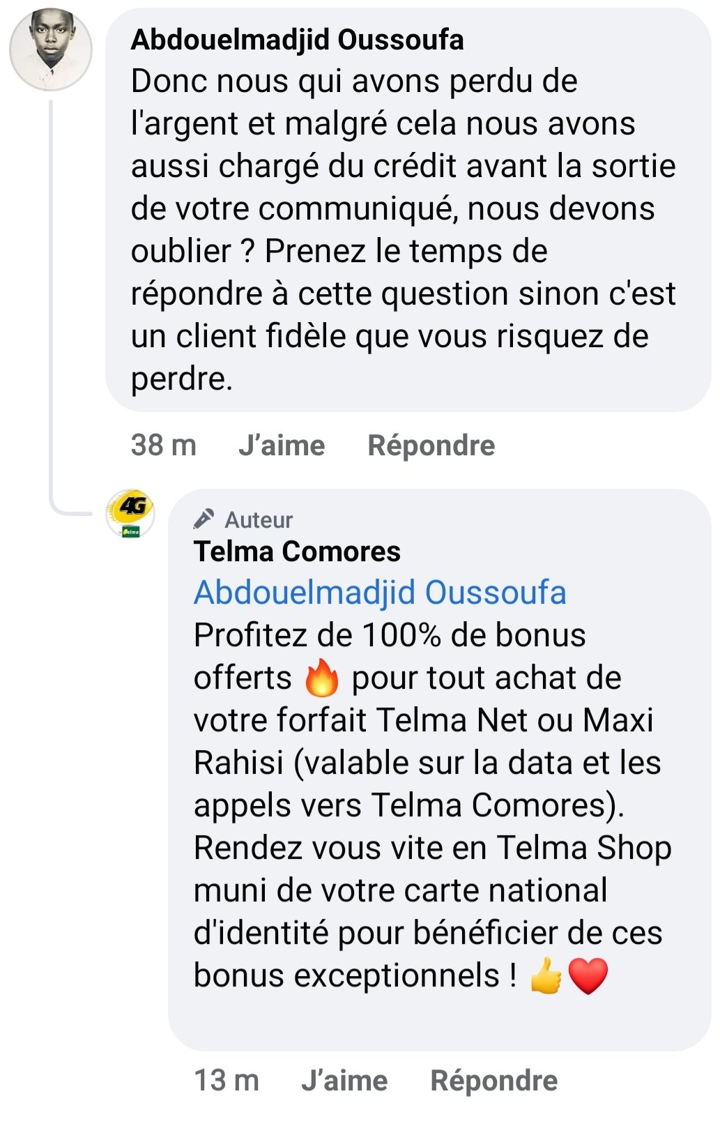 Sur la page officielle de Telma les réclamations s’accumulent et l’opérateur fait la sourde oreille. Voici le communiqué qui a déclenché la colère:
