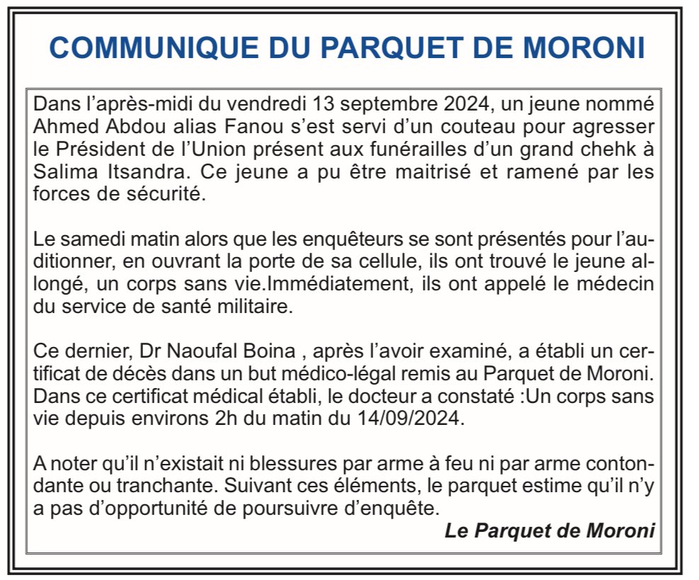 Tentative d’assassinat d’Azali : L’enquête est classée et voici les raisons du parquet