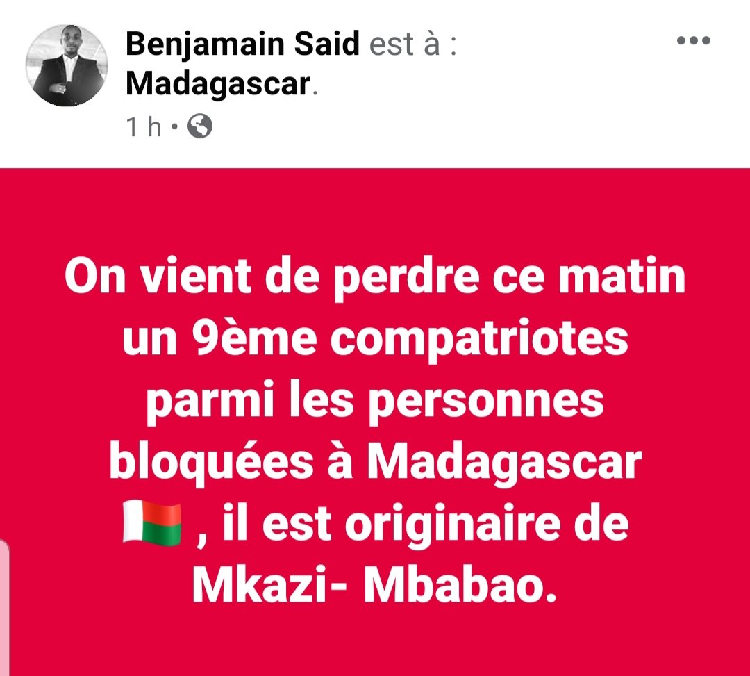 Un nouveau décès est survenu en moins de 48 heures parmi les Comoriens bloqués à Madagascar.