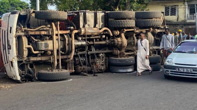 Un grave accident s’est produit ce matin à 4 heures dans le quartier PAM, à Moroni. Les riverains, brutalement réveillés, ont décrit un fracas impressionnant provoqué par l’impact d’un camion chargeur contre le mur longeant la route menant vers la coulée.