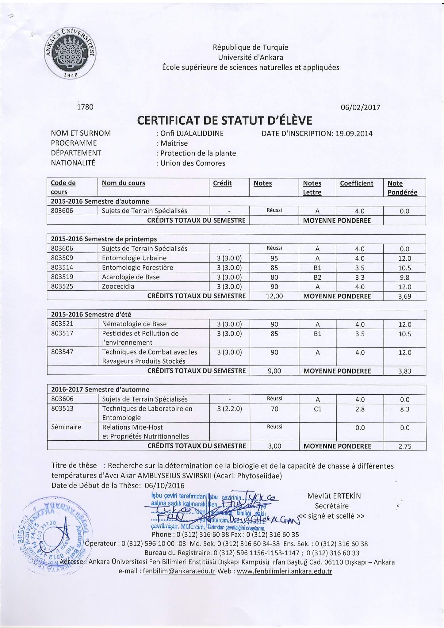 Felicitations pour les travaux de son diplome de Maitrise mais ceci n’a pas de sens. Comment peut on l’empecher de partir alors que ses travaux n’ont commence que l’annee derniere? En plus, la moyenne general de 1ere annee montre un 2.75, c’est un C, dans le systeme educatif Turque. pour un surdoue, la moyenne devrait etre au moins un 4, qui est une note A. Et juste par curiosite, pourquoi le bulletin de note est en Francais? ne devrait il pas etre en Turque ou Anglais?