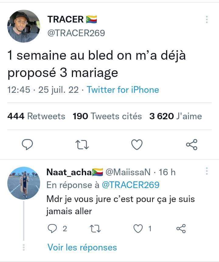 Comme toutes les années pendant les périodes des vacances, les jviens démarquent en masse en juillet et en Août aux Comores pour voir les familles, d’autres pour le grand mariage et passer les vacances. Un jeune homme de la diaspora comorienne en France qui est actuellement en vacances a reçu 3 demandes en mariage en une semaine.