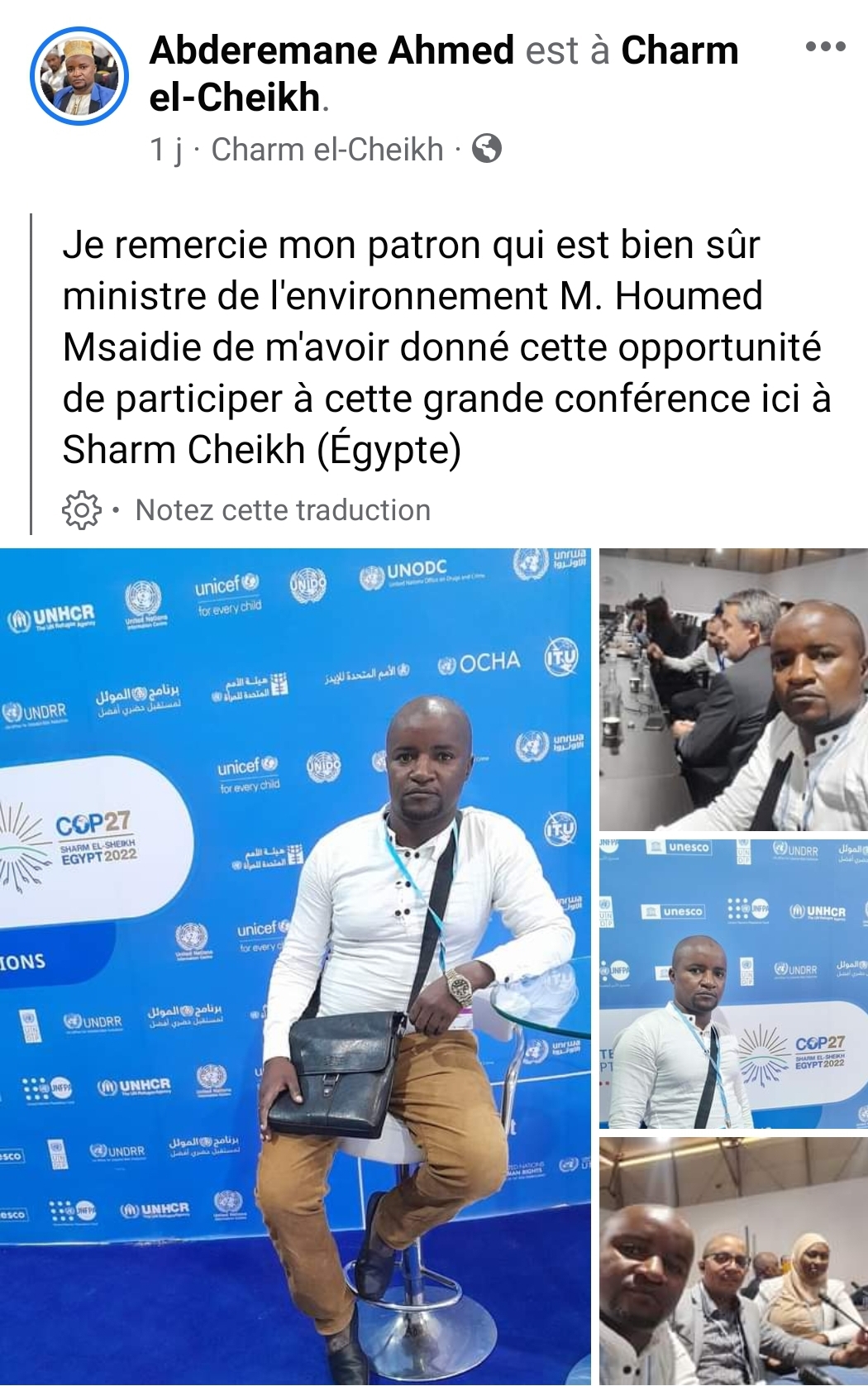 Il n’est pas le seul le journaliste à obtenir une aide ministérielle pour voyager. Houmed Msaidié, Djaffar Salim Allaoui et d’autres ministres offrent des voyages et des visas à des journalistes. Un journaliste d’une grande page Facebook a bénéficié d’un visa pour la France grâce à Sarkozy. Ici l’ancien journaliste Rcm13 remercie son ministre.