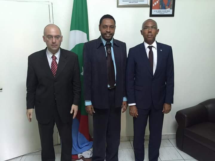 Amir Mitterand a déclaré sur sa page Facebook, « un honneur pour moi de recevoir SEM R. Judes, Ambassadeur de France aux Comores accompagné du nouveau Consul de France à Anjouan à la mairie de Mutsamudu ce jeudi 27 avril 2017. Une visite de courtoisie certes mais qui nous a donné l’occasion de présenter nos priorités à la France et de renouveler notre détermination à travailler en toute franchise avec les services consulaires afin de préserver notre crédibilité en ce qui concerne surtout les documents de l’état civil émanant de la mairie de Mutsamudu. »
