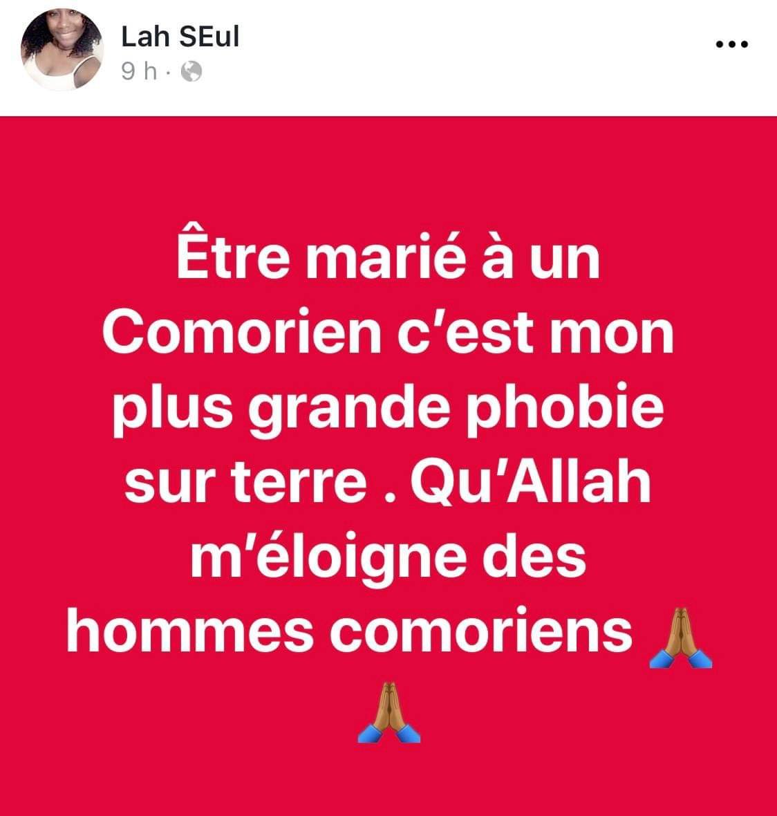 Mensonge flagrant, la jeune fille est d’origine comorienne, je connaît des familles comorienne qui interdisent leurs fille à être en couple avec des comoriens, deviner avec qui leurs parents exige qu’elle se mari? Biensure des mahorais, d’ailleurs, la mére est marié avec un mahorais. Et inutile de vous dire pourquoi ces choix, je vous laisse deviner, voilà la réalité. Aucune jeune fille mahoraise ne fait ce genre de souhait, c’est absurde. Et c’est une jeune comorienne dont je taierais le nom qui a chanté sur YouTube, je cite « la première jour que je t’ai vu » je vous invite à aller voir.