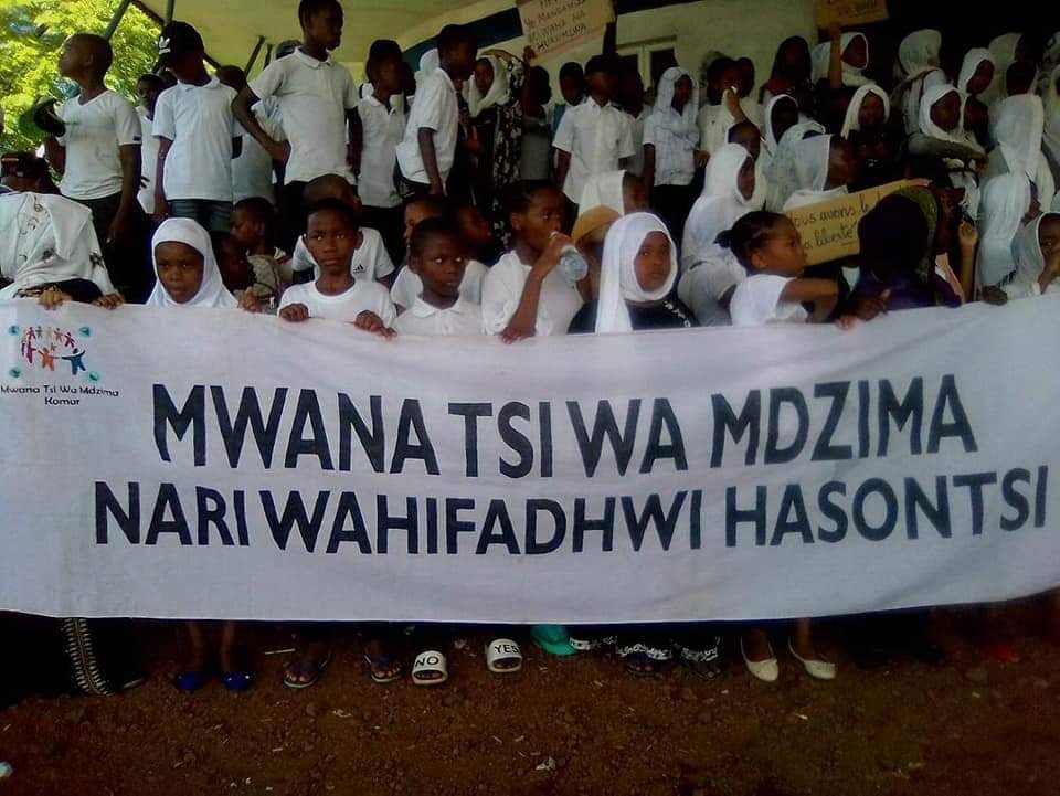 On pouvait lire sur les pancartes : « Mwana Tsiwa Mdzima, nari wahifadhu hasontsi »