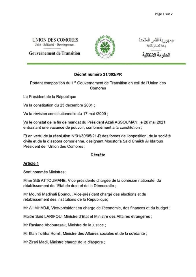 1er gouvernement de transition en exil de Moustoifa Saïd Cheikh