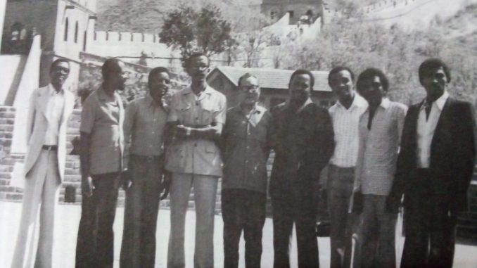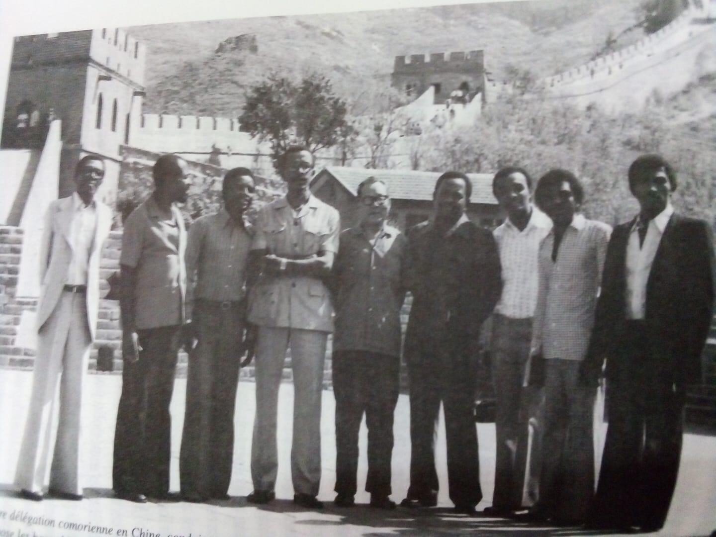 De gauche a droite: MM. Abdoul Madjid Youssouf, Abdou Ahamada , Ali Toihir, Salim Himidi, un fonctionnaire – guide chinois du ministere des affaires etrangeres, Abdou Bacar Boina, Ali Nassor Mohamed, lbrahim Halidi , Zaidou Ali.